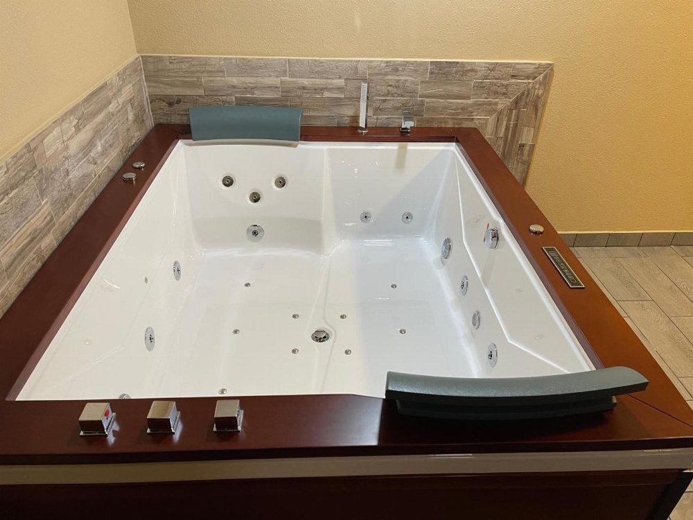 This suite features a hot tub and a fireplace. The air-conditioned suite has 1 bedroom and 1 bathroom with a bath and a shower. The suite features a sofa, a carpeted floor, heating, a flat-screen TV with cable channels, as well as pool views. The unit has 1 bed.
